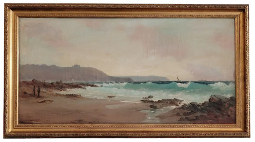 Oil on canvas, signed and dated 1900, 19.5″ x 39.5 inches $1,200 This seascape is not typical of Huguet, who