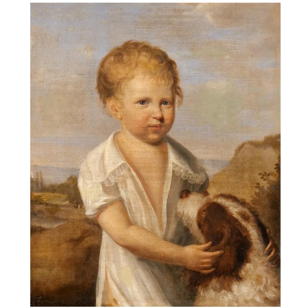 19th Century German School Young Boy with his dog